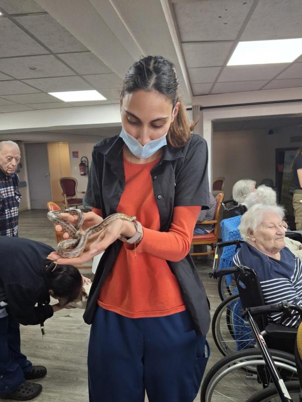 Mercredi 19 Février, les résidents ont eu le plaisir de participé à une séance de zoothérapie d'une durée d'1h30.